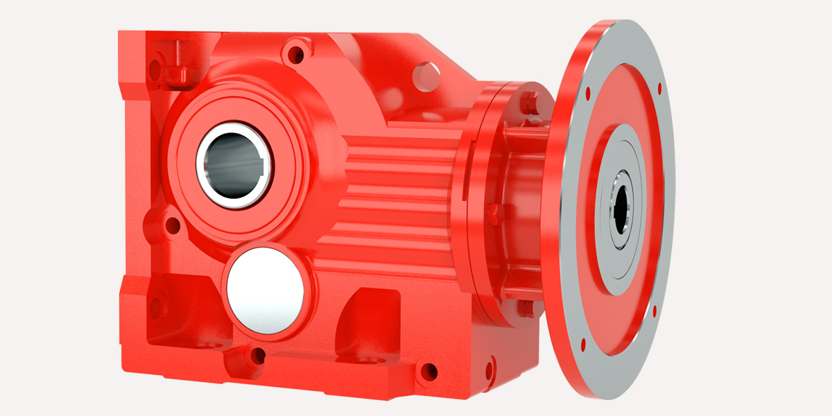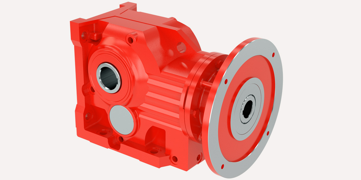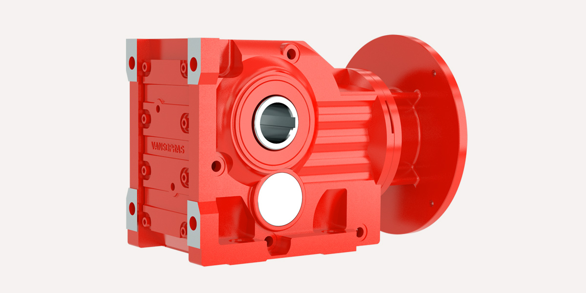 TK - Bevel Helical Geared Motor are bevel gearboxes with monoblock housing. They are intended for applications requiring higher efficiency and strength. Their input and output shafts are perpendicular to each other. TK - Bevel Helical Geared Motor combine the advantages of the E Series’ mounting options with the monoblock housing, higher efficiency and higher torque capabilities of the TR - Inline Helical Geared Motor . They offer flexible connection options (IEC B5 or B14, direct or solid input shaft mounting). Bevel gearboxes can have a maximum of three stages in a single housing. Larger sizes are available only with three stages in a monoblock housing. A higher number of transmission ratios (up to six) can be implemented through the use of additional housings.